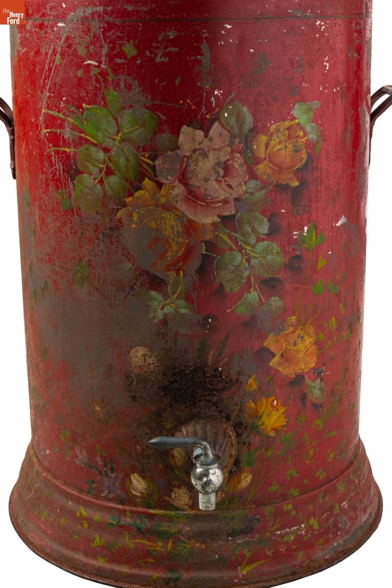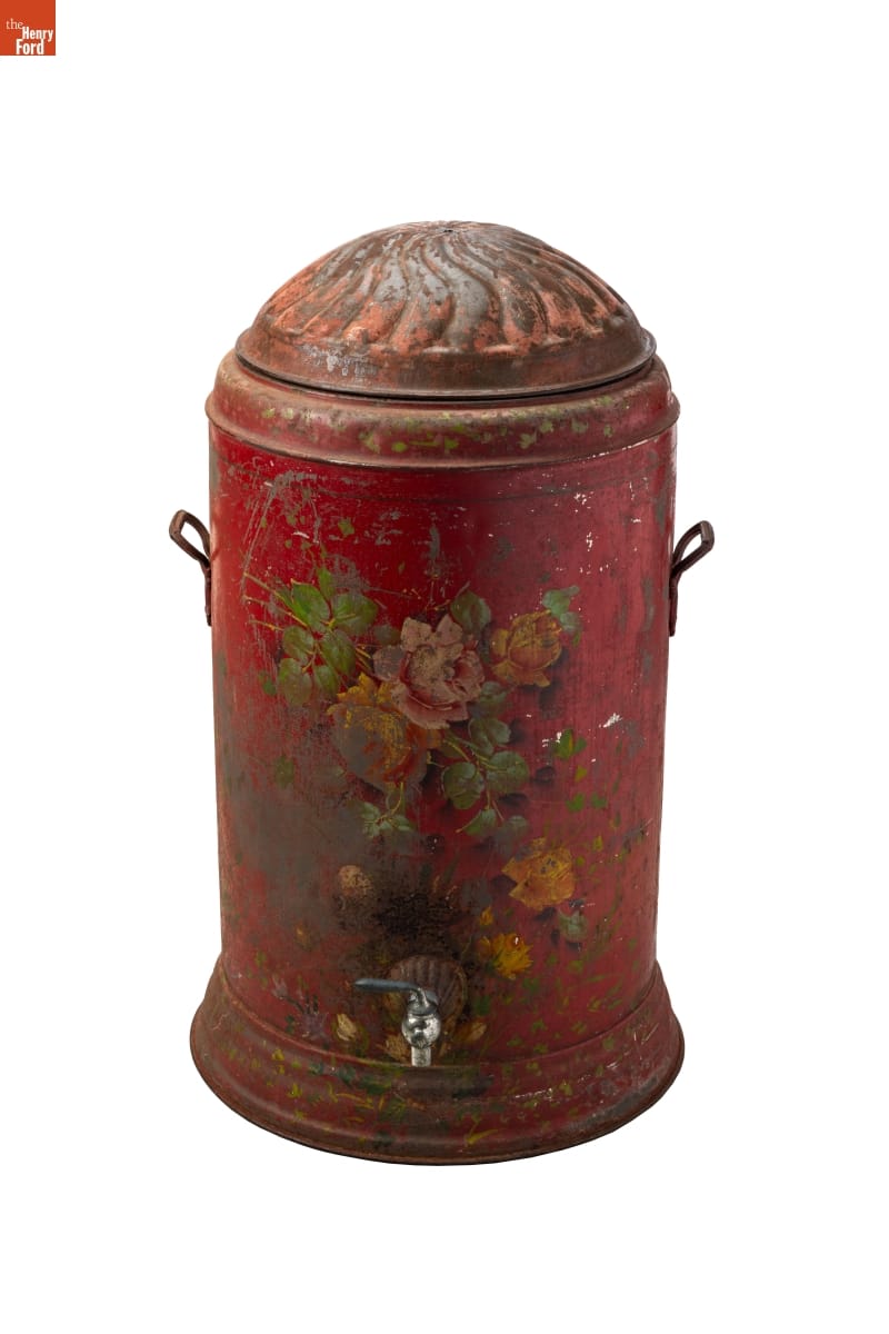 At a time when many buildings lacked running water, people filled insulated metal, tin, stoneware, or ceramic water coolers with fresh cold water to drink. These coolers, placed in homes, offices, stores, and schools, provided quick refreshment with the turn of the spigot on a hot day.