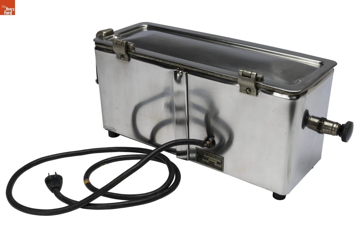 PELTON STERILIZER / SERIAL 4C41554 / MODEL 214C / VOLTS 110 WATTS 900 / THE PELTON & CRANE COMPANY / DETROIT, MICHIGAN, U.S.A.