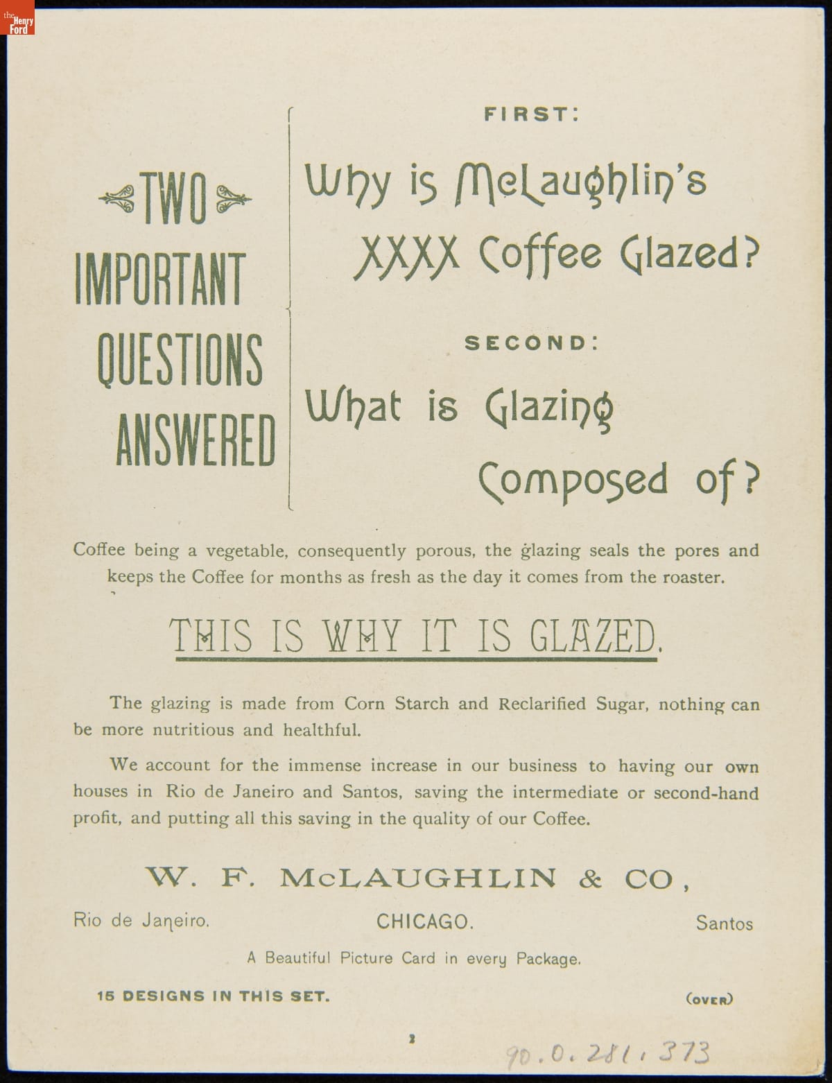 Trade Card for McLaughlin's XXXX Coffee, W.F. McLaughlin & Co., 1892