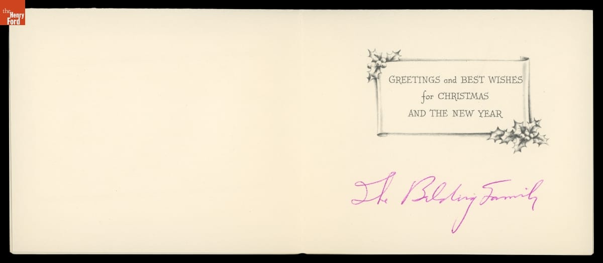 Mailing colorful, commercially designed greeting cards was a 20th-century American tradition. During the holidays, friends and neighbors commonly exchanged cards wishing one another a Merry Christmas or Happy New Year. Publishers often employed decorative imagery, such as a homey winter scene, to evoke warm seasonal memories.