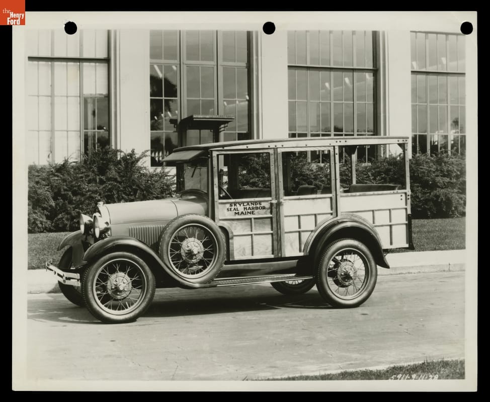 In 1925, Edsel and Eleanor Ford built a summer house in Seal Harbor, Maine. Skylands was designed by architect Duncan Candler and landscaped by Jens Jensen, who also planned the grounds at the Fords' Gaukler Pointe estate in Michigan. The family enjoyed their time at Seal Harbor. This 1929 Ford Model A station wagon may have been used at Skylands.