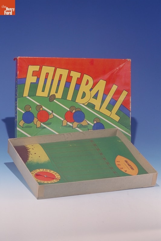 J. Pressman and Company structured this game after a regular football game. A player's team runs, passes, punts and scores. A team has four downs to make ten yards and there are four quarters. The player on offense chooses a play from a list and spins the spinner. The corresponding number in the playlist's column tells the outcome of the play.