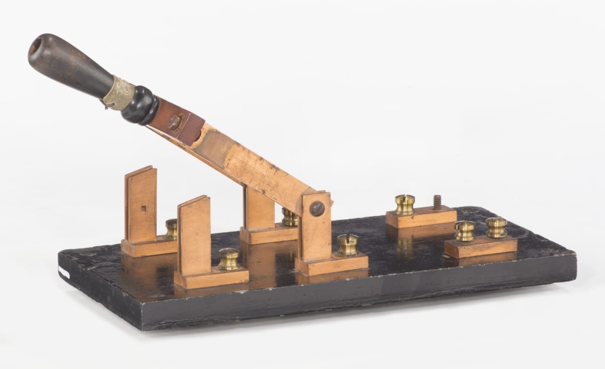 Switches open or close an electrical circuit to turn things off or on. In the late 1800s and early 1900s, knife switches were commonly found in engine or generating rooms, connected to factory motors, or mounted on a building's power and lighting switchboard. Operators pushed the hinged, metal blades into the switch's jaws to send electricity to where it was needed.