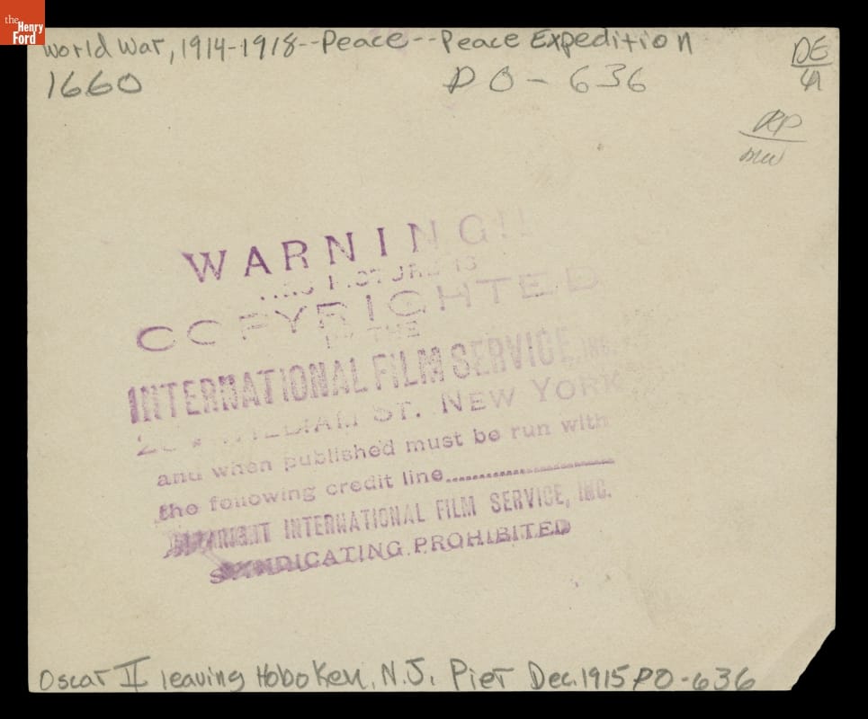 Disgusted by the carnage of World War I, Henry Ford launched a well-meaning but naive effort to end it in December 1915. He chartered the ship Oscar II to carry a party of citizen-mediators to Europe to negotiate for peace. But the delegates feuded among themselves, press support faded, and Ford himself tired of the bickering. The "Peace Ship" expedition failed.