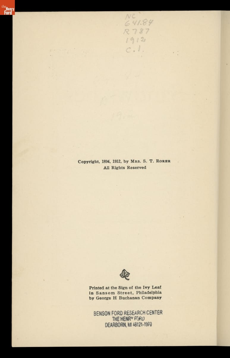 Written by Sarah Tyson Heston Rorer. Published by Arnold and Company, Philadelphia, Pennsylvania.