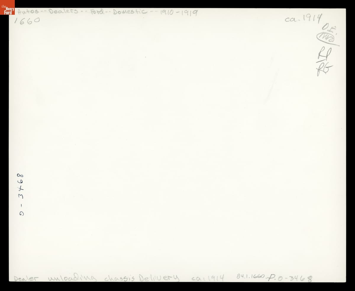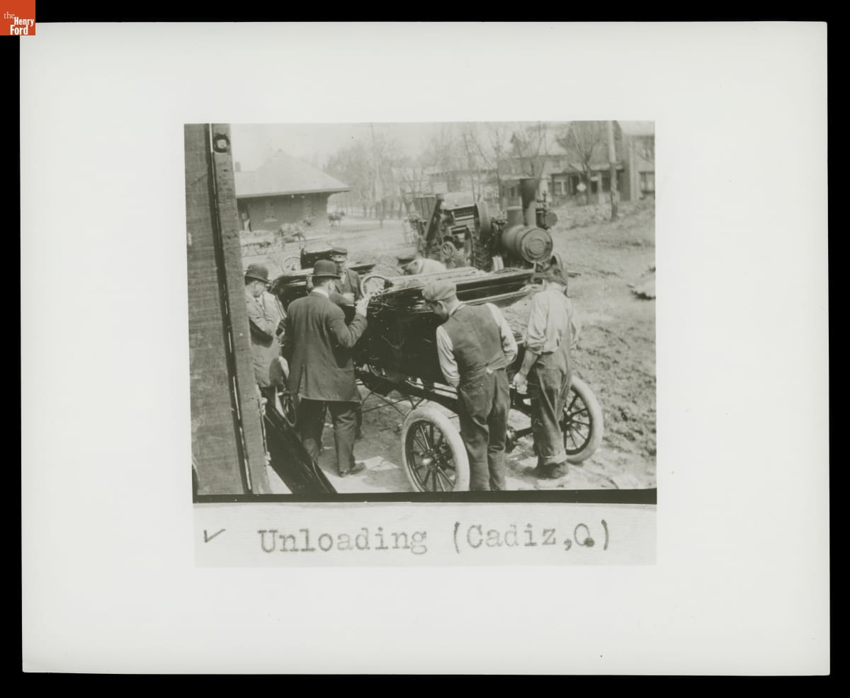 Unloading Ford Model Ts at a Dealership in Cadiz, Ohio, circa 1914