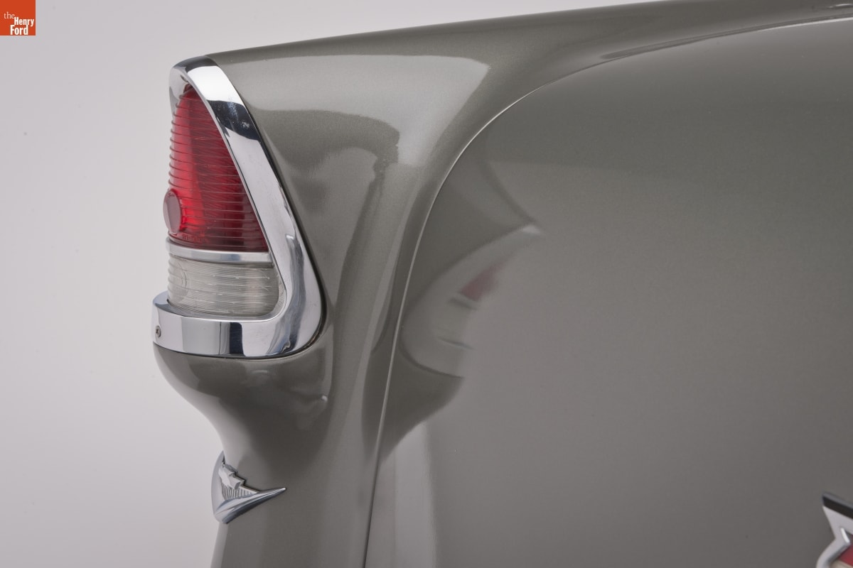 Chevrolet turned its image around in 1955. Its new V-8 engine was light modern, powerful and reliable. Combined with a clean, classic new body style it changed customers' impression of Chevrolet from stodgy and conservative to sporty and youthful almost overnight. This car, in fashionable coral and smoke grey colors, epitomizes Chevy's new slogan, "The Hot One."