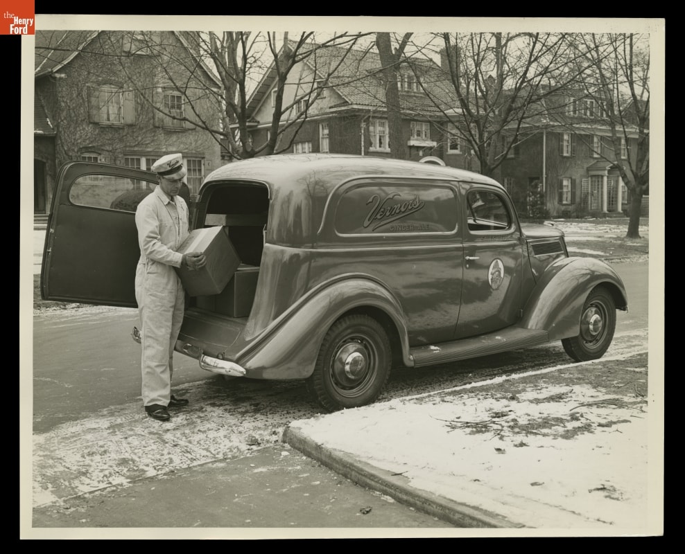 Vernor's Ginger Ale, one of the oldest surviving soft drinks in the United States, was created in Detroit. By the mid-1910s, innovations in bottling technology and the increasing affordability of the automobile allowed the company to begin delivery of the beverage. Vernor's Ginger Ale's first delivery fleet, purchased in 1916, included eight Ford Model T trucks. The company continued to use Ford vehicles for many years.