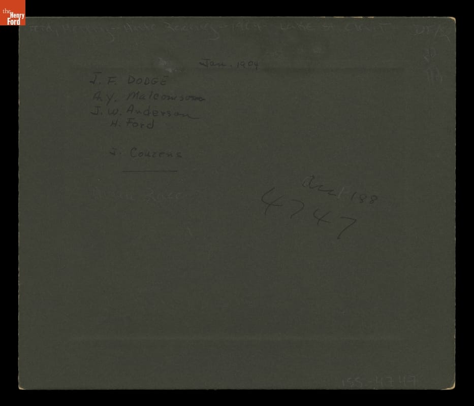 Henry Ford and Ford Motor Company Stockholders with Arrow Racer on Lake Saint Clair, January 12, 1904