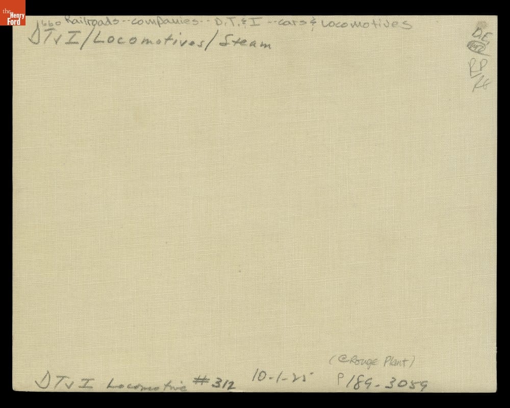 Detroit, Toledo & Ironton Railroad Locomotive No. 312 at Ford Motor Company Rouge Plant, 1925