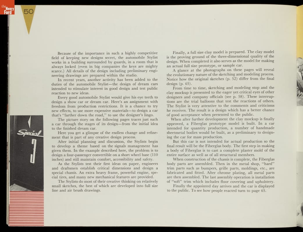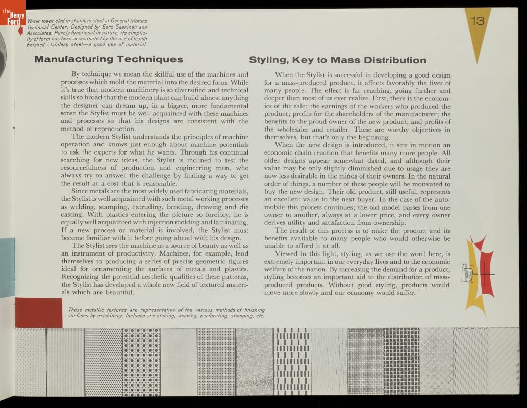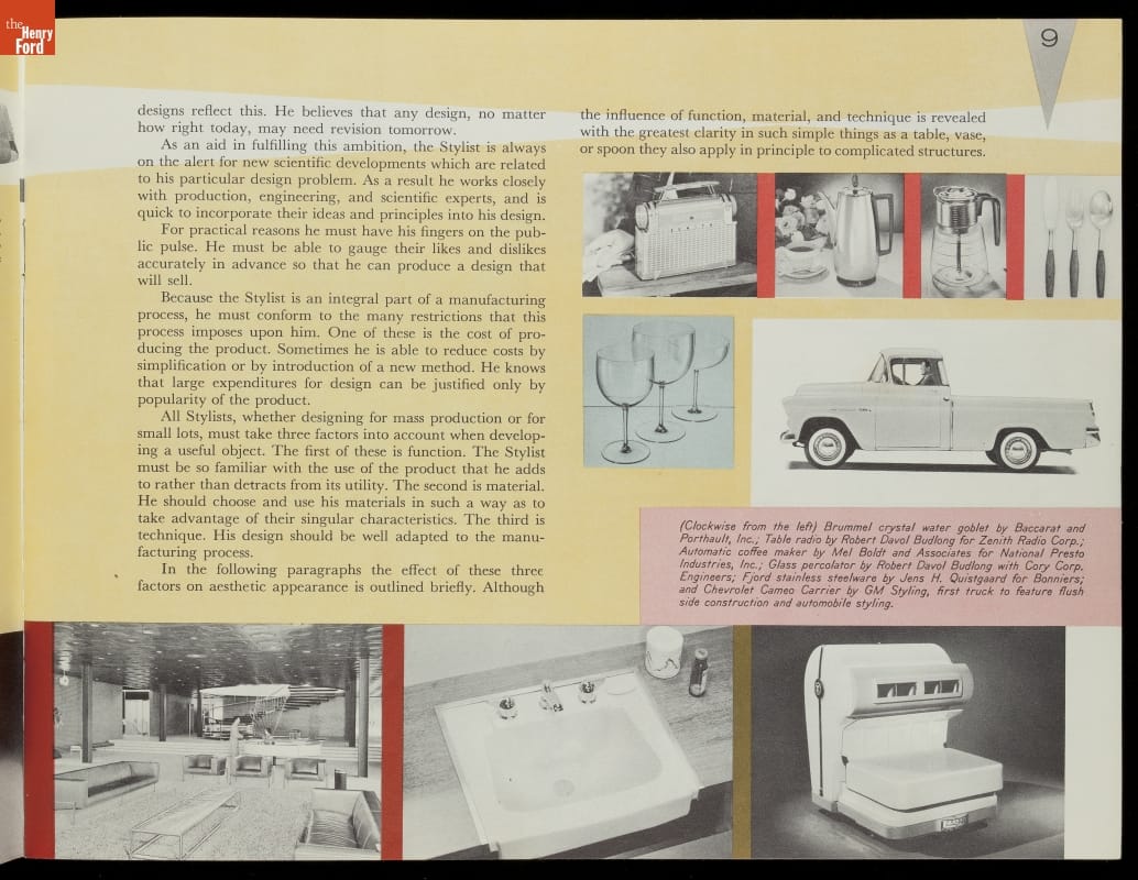 This General Motors booklet reflected the growing importance of the Stylist, whose ostensible task, according to the author of the booklet, was to make things beautiful by "developing a form of beauty exactly suited to the purpose -- a form of beauty evolved from within."