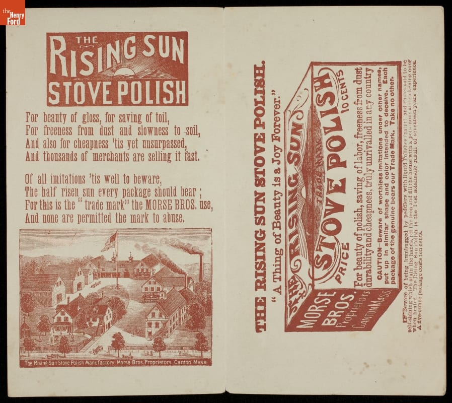 Trade Card for Rising Sun Stove Polish, Morse Bros., 1870-1900