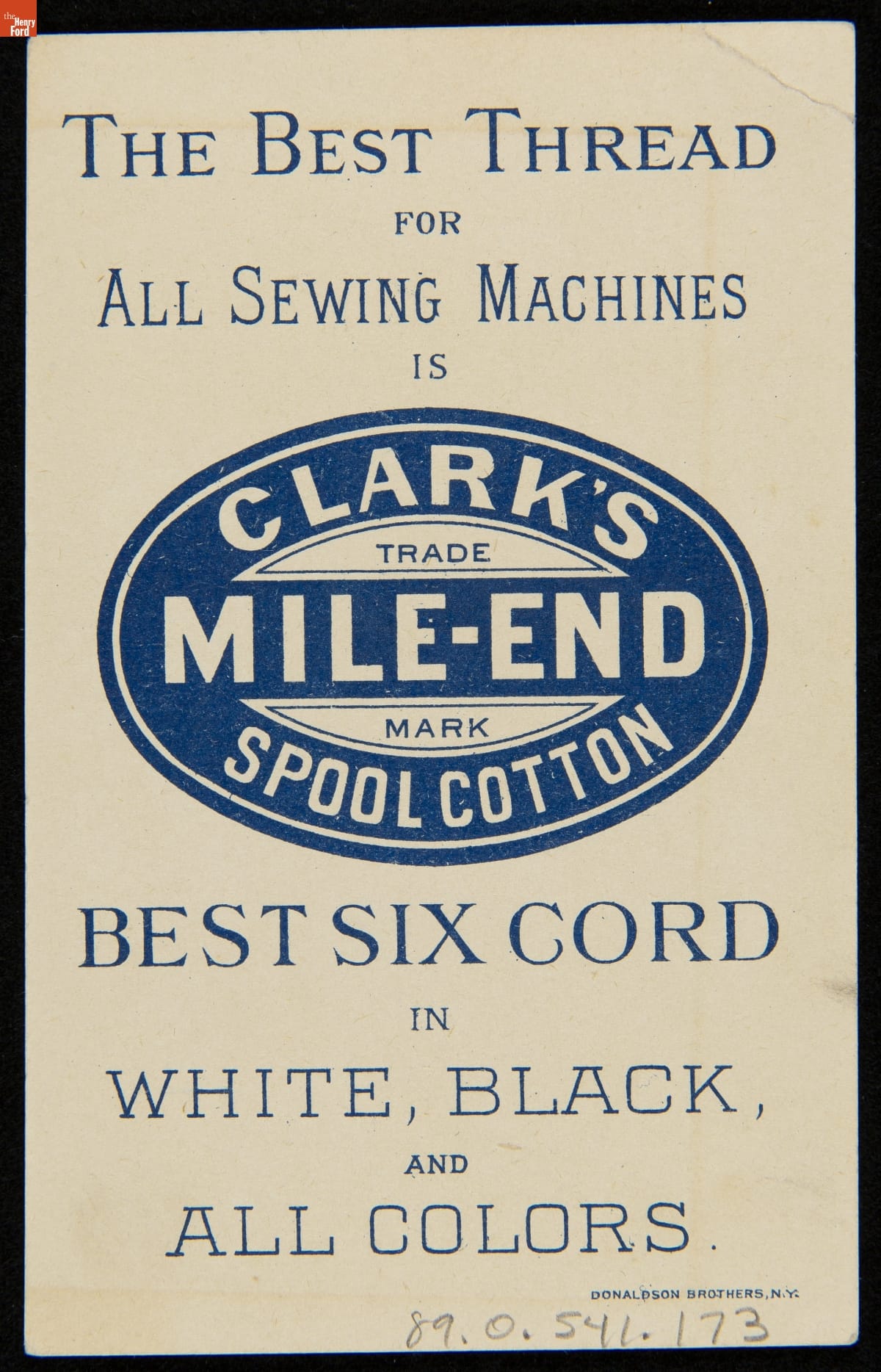 Trade Card for Clark's Mile-End Spool Cotton, Clark's O.N.T., 1880-1890