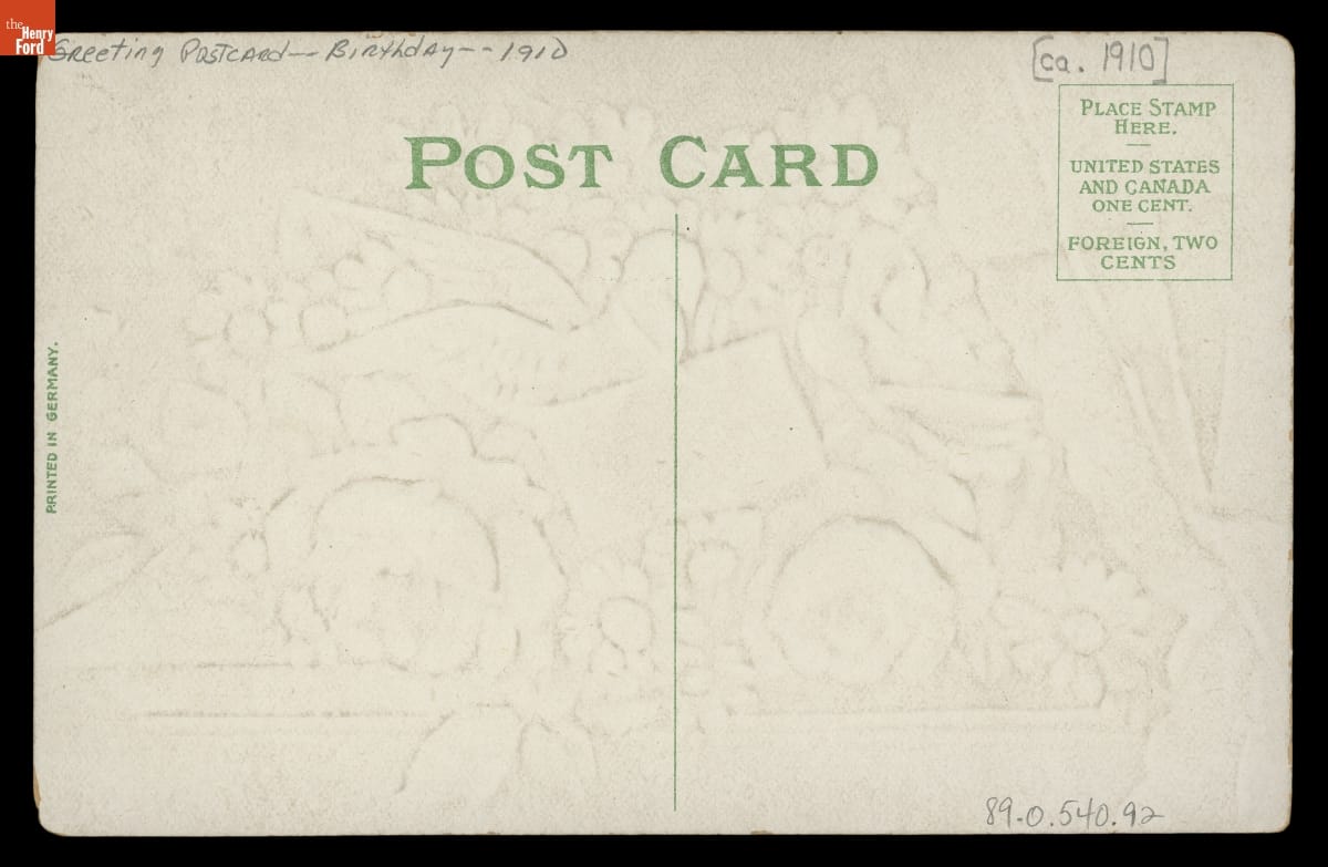"Birthday Greetings," Bird in Flower Arrangement, circa 1910