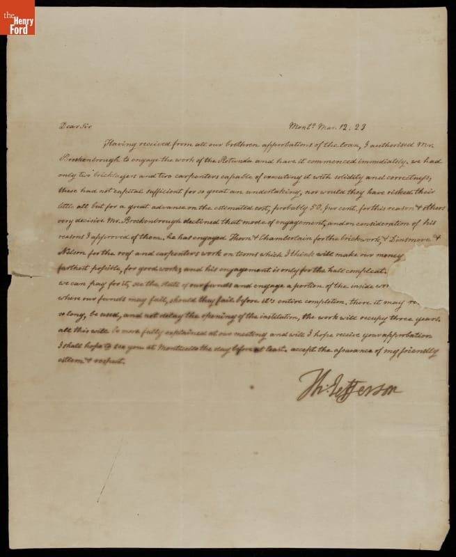 Letter from Thomas Jefferson to an Unidentified Correspondent, 1823