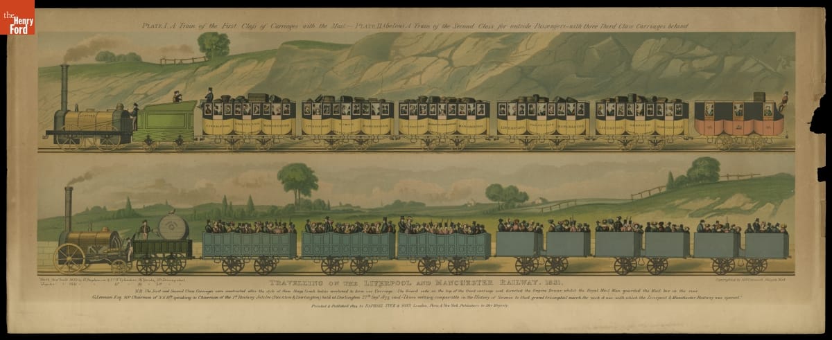 Lithograph, "Traveling on the Liverpool and Manchester Railway, 1831," 1894