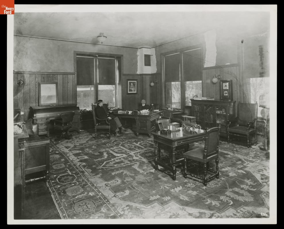 Henry Ford was photographed in his office at Ford Motor Company's Highland Park plant in 1913. The photo session was a rare moment in which to catch Ford at his desk. Always a mechanic at heart, Ford preferred to spend his time on the factory floor talking in person with his managers and employees.