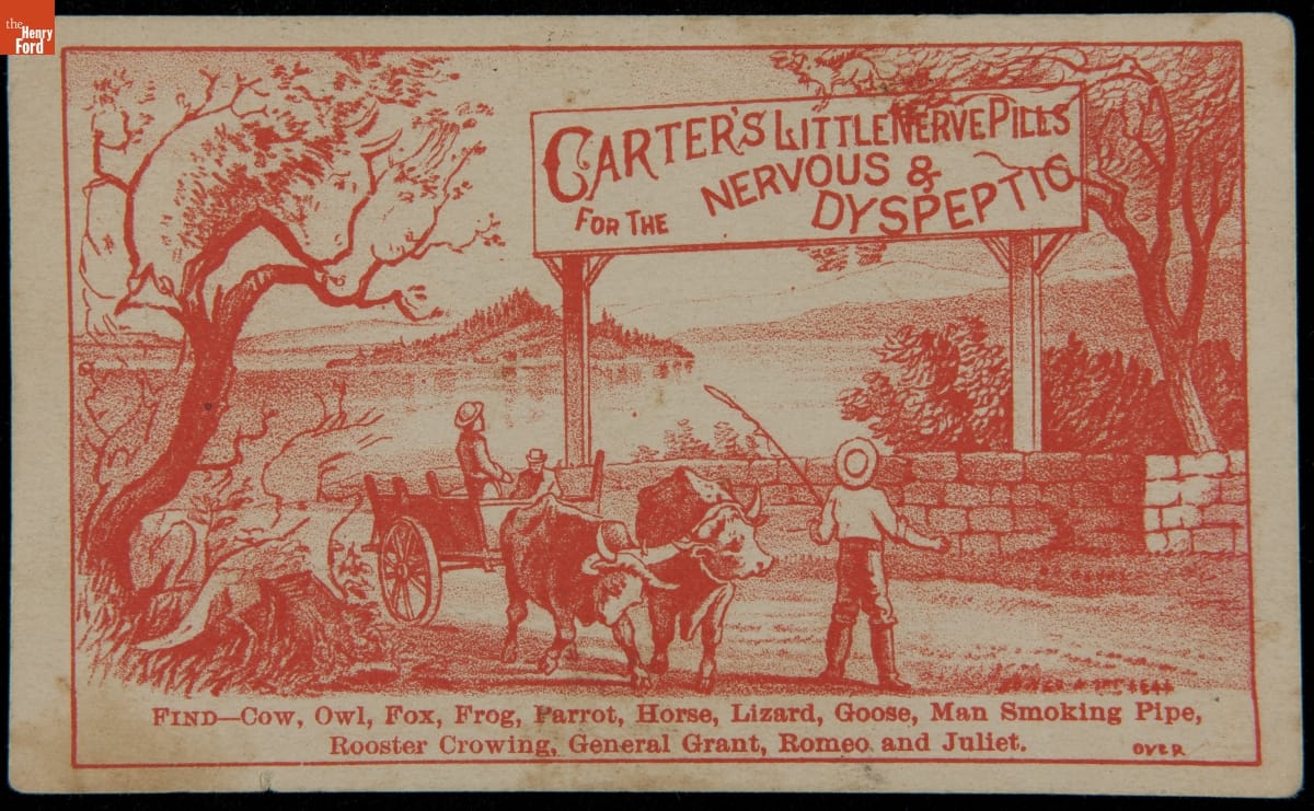 In the last third of the nineteenth century, an unprecedented variety of consumer goods flooded the American market. Some enterprising advertisers sought to distinguish their products from the competition, distributing trade cards that incorporated a puzzle or game. Americans enjoyed and often saved the popular little advertisements, which survive as historical records of consumerism in the United States.