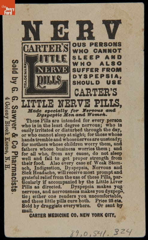 Trade Card for Carter's Little Nerve Pills, Carter Medicine Co., 1880-1898