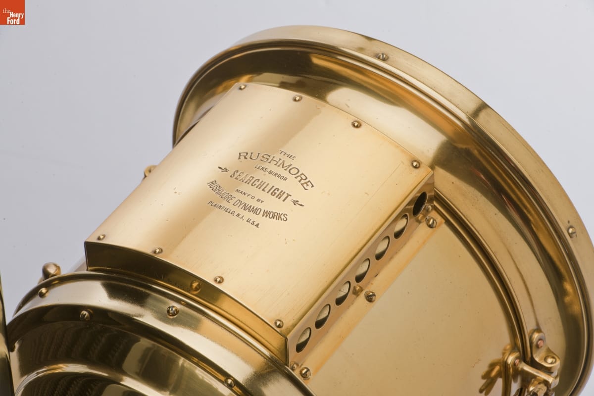 Headlights: THE / RUSHMORE / Lens-Mirror / -SEARCHLIGHT- / Man'fd by / RUSHMORE CYNAMO WORKS / PLAINFIELD, N.J., U.S.A.