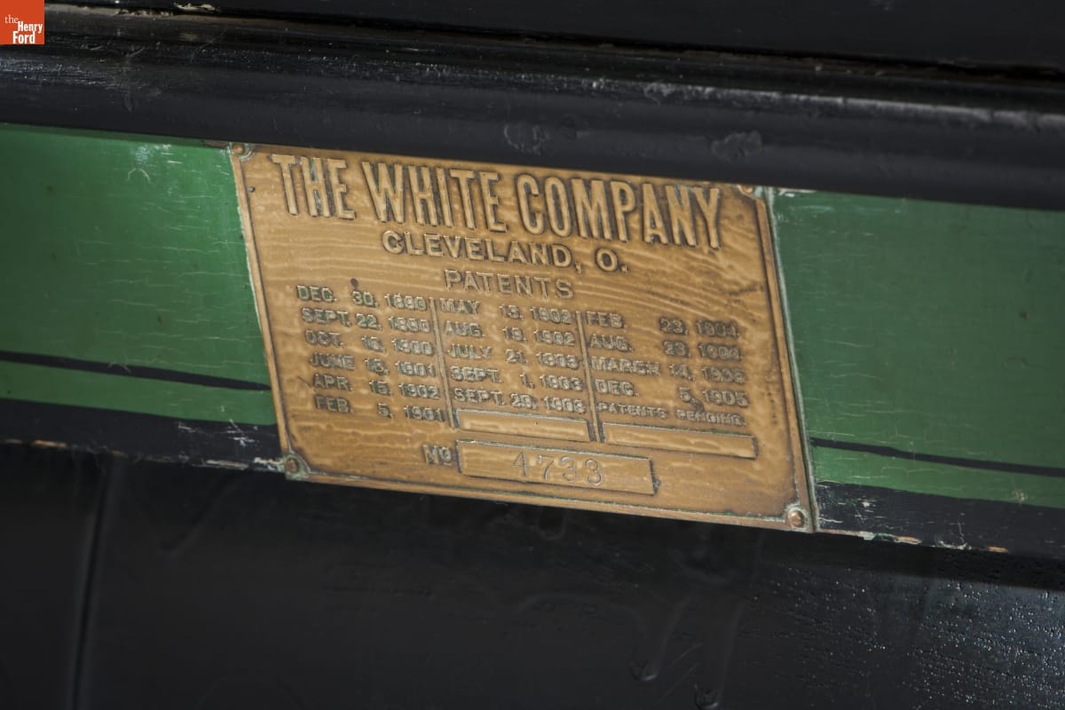 Plate on rear:: THE WHITE COMPANY / CLEVELAND, O / PATENTS / De. 30, 1890 to Dec. 5, 1905 etc. / No. 4733
