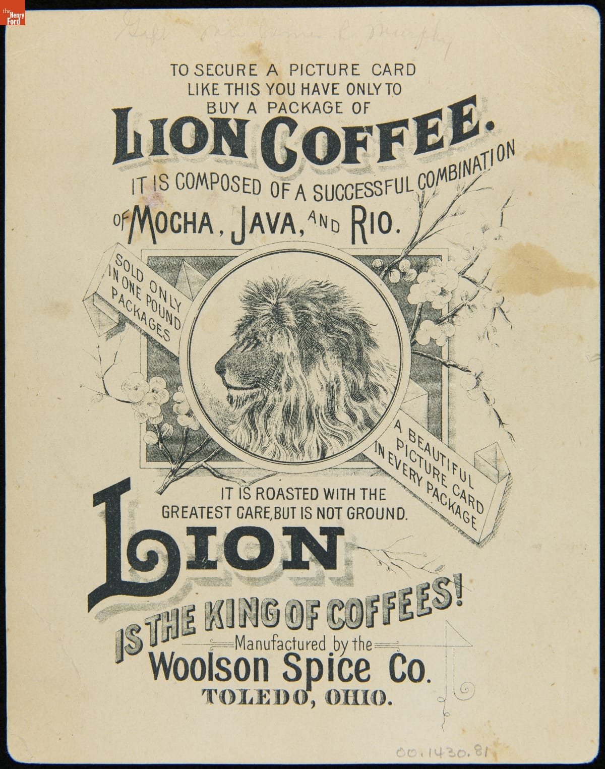 Trade Card for Lion Coffee, Woolson Spice Co., 1882-1900