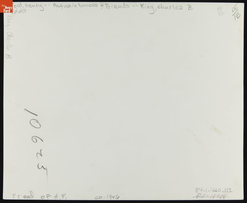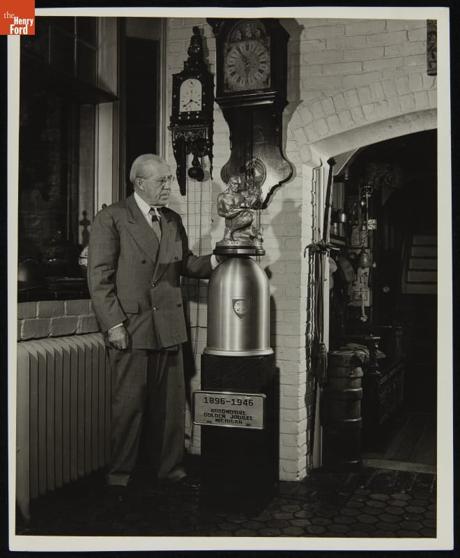 Charles B. King with 1896-1946 Michigan Automotive Golden Jubilee Award, 1946