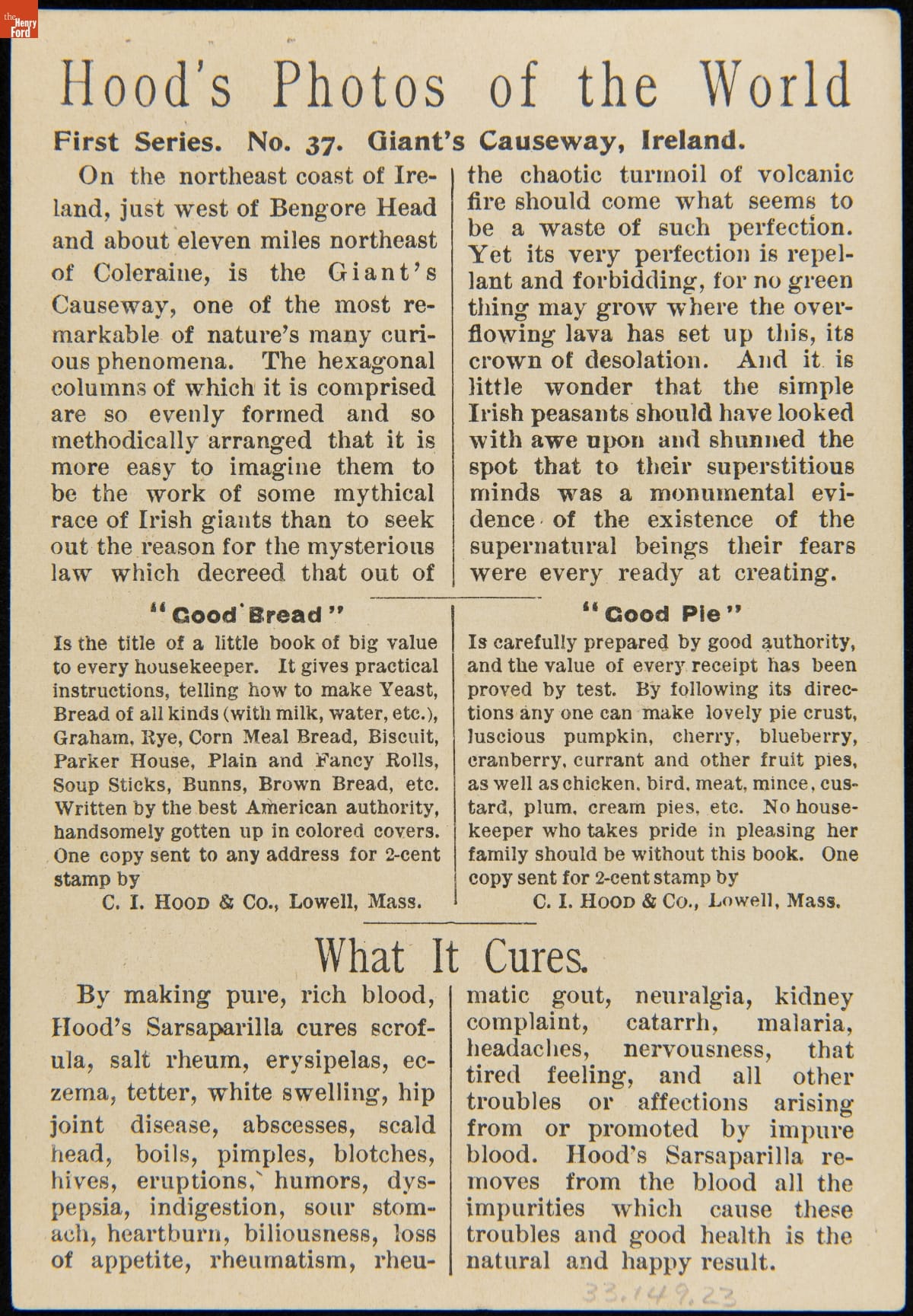 Trade Card for C.I. Hood & Co. with Hood's Photos of the World, "Giant's Causeway, Ireland," 1890-1910