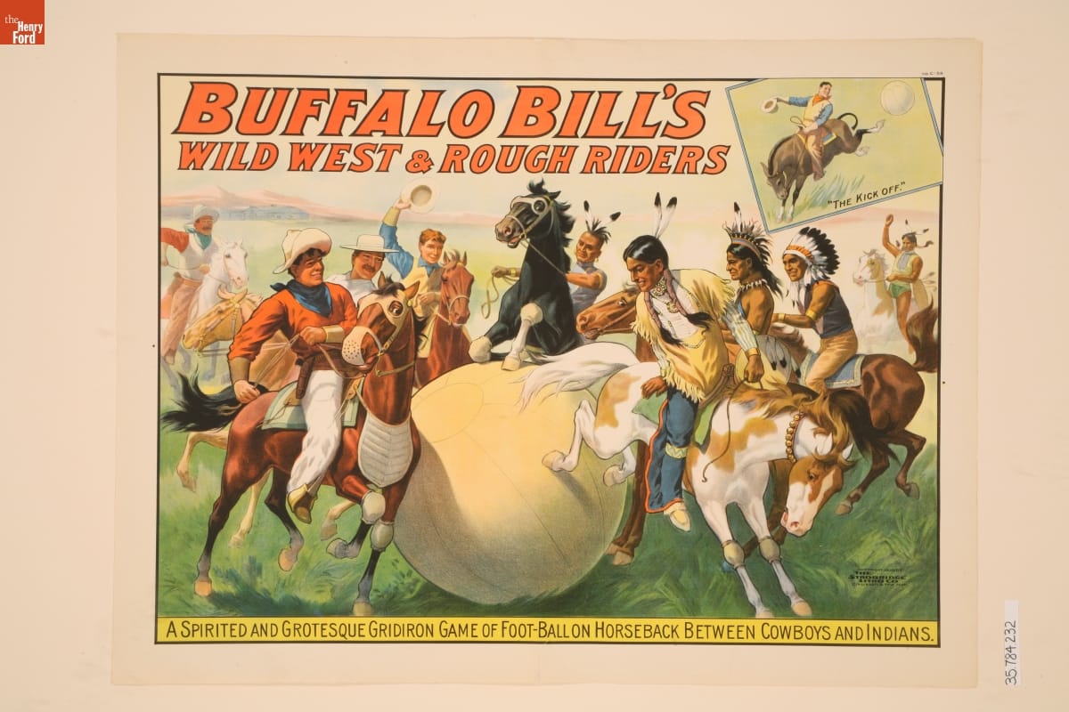 Circus Poster, Buffalo Bill's Wild West & Rough Riders Present "Football on Horseback Between Cowboys and Indians," 1908