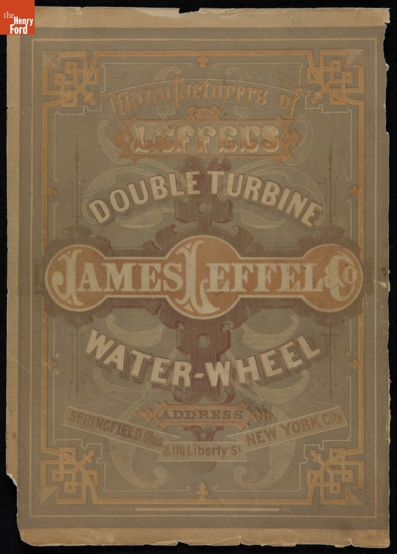 JAMES LEFFEL'S / DOUBLE / TURBINE / WATER / 1879 / WHEEL / SPRINGFIELD/ OHIO / & / 110 LIBERTY ST. / NEW YORK CITY