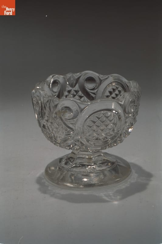 Nineteenth-century American glassmakers experimented with new methods to create products for a growing consumer market. In the 1820s, pressing glass into metal molds by machine was perfected, and by the mid-1800s, manufacturers were creating a variety of inexpensive pressed glass housewares. America's middle-class consumers could now decorate their homes with attractive glass bowls, creamers, dishes, plates, vases, and other tableware.