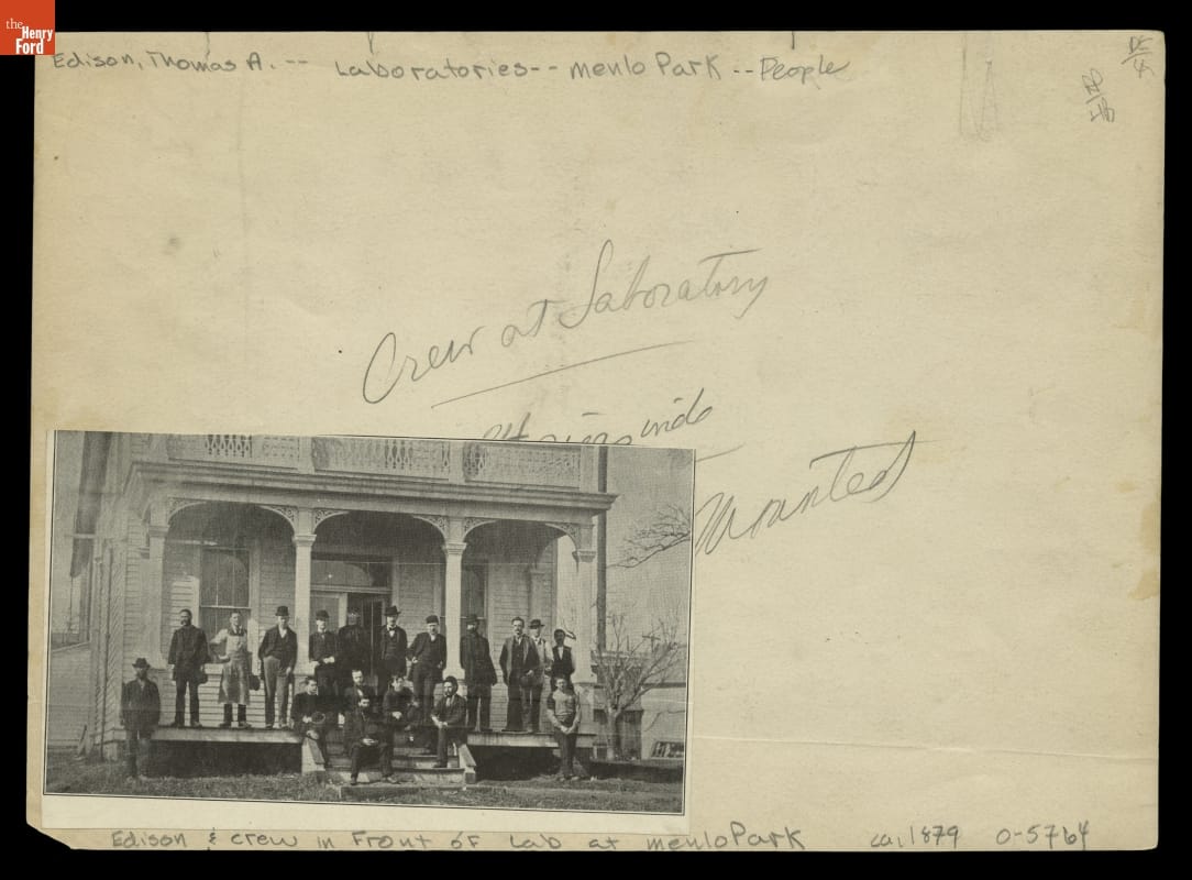 Thomas Edison and Employees outside Menlo Park Laboratory in New Jersey, 1880
