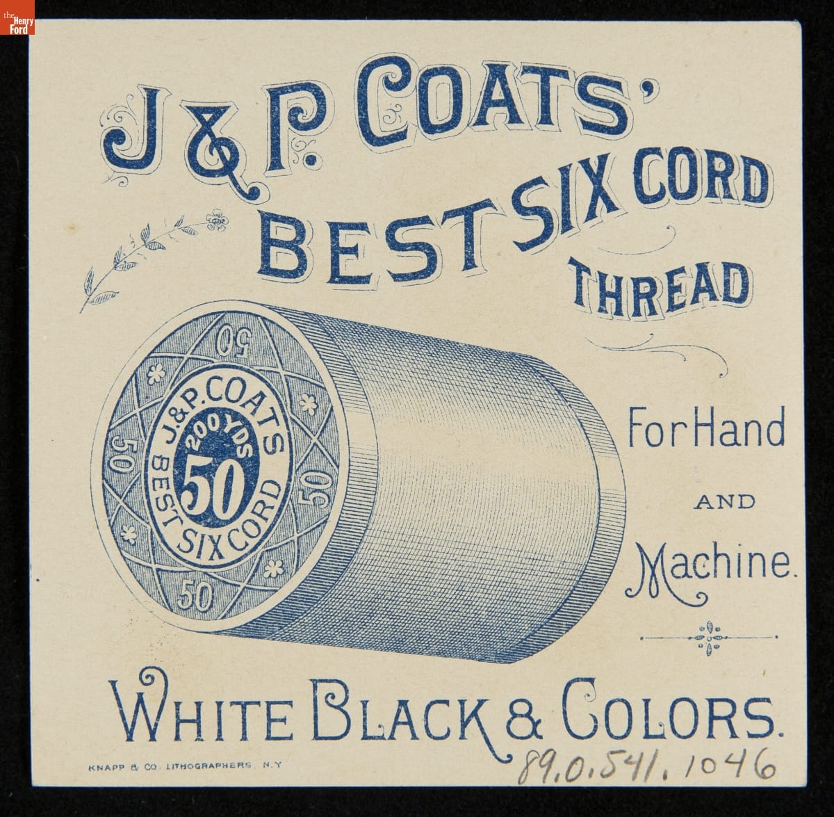As color printing gained momentum in the late 19th century, trade cards became a major means of advertising goods and services. Americans enjoyed and often saved the little advertisements found in product packages or distributed by local merchants. This trade card advertises Six Cord Thread from J. & P. Coats Company.