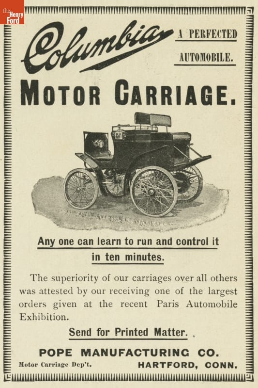Columbia Motor Carriage Advertisement, 1898