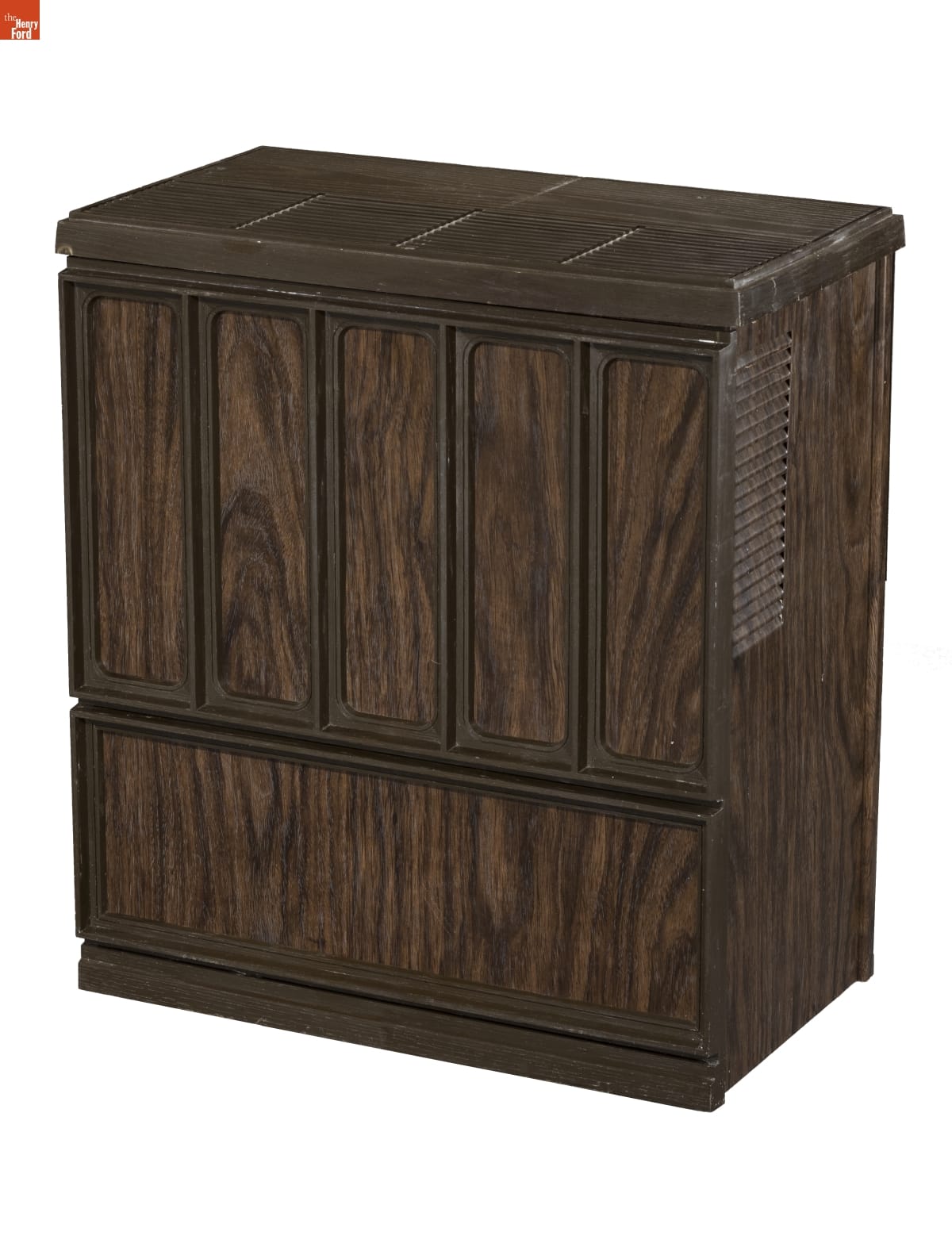 Electric appliance manufacturer National Presto Industries, Inc., became known for innovative products that anticipated and responded to evolving consumer needs. By the 1970s, the company produced a wide range of kitchen, personal grooming, and other home appliances. Presto contracted Mel Boldt and Associates to design many of its distinctive products, including this faux wood humidifier.