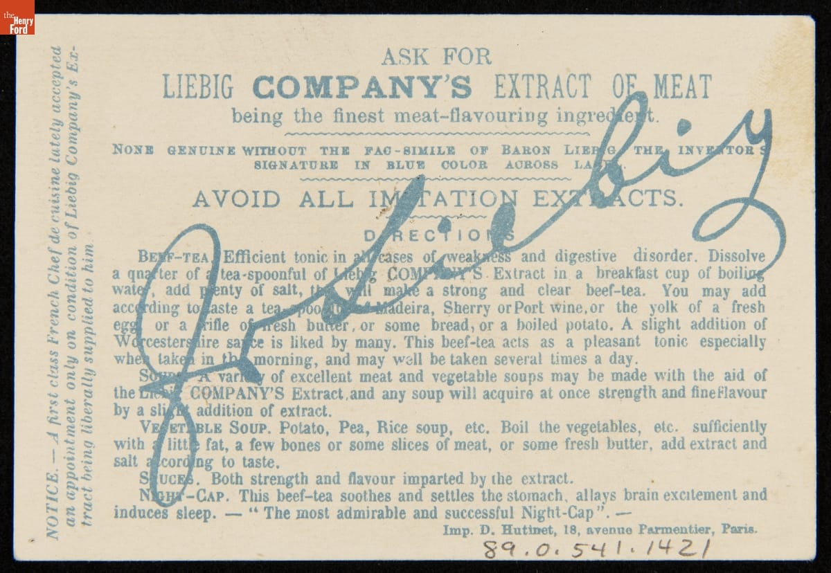 Trade Card for Liebig Extract of Meat Company Products, 1880-1900