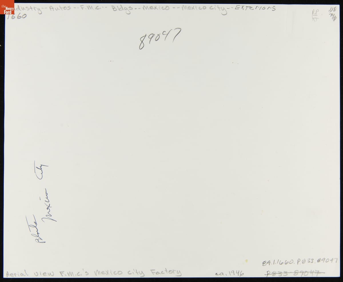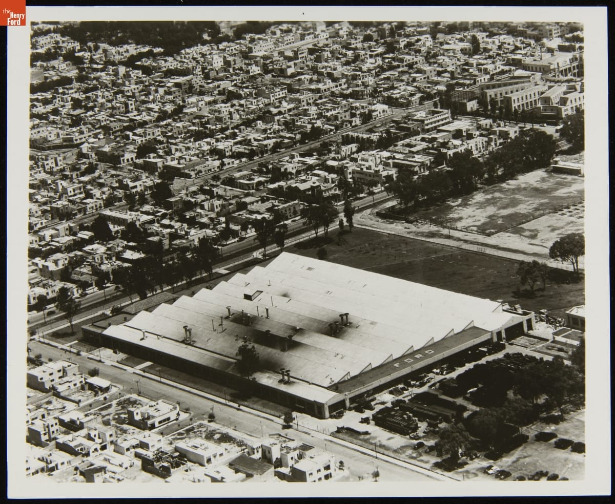 Ford Motor Company operated sales and service branches, as well as assembly plants, in cities around the world. Ford opened its first Mexico City, Mexico, assembly plant in 1926. It was replaced in 1932 by the larger factory seen here. A century later, Ford's expanded Mexican facilities were producing vehicles for export to the United States.