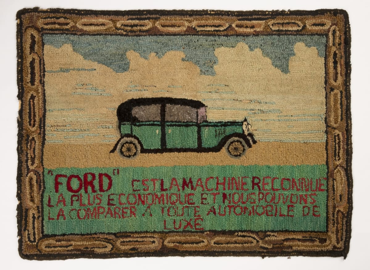 For many women in the early 20th century, Henry Ford's affordable automobile represented freedom and financial security, especially if they were fortunate to be part of the Ford Motor Company family. Their expressions of thanks were often homemade, like this hooked rug. A popular gift, many of these found their way to the industrialist's estate, Fair Lane.
