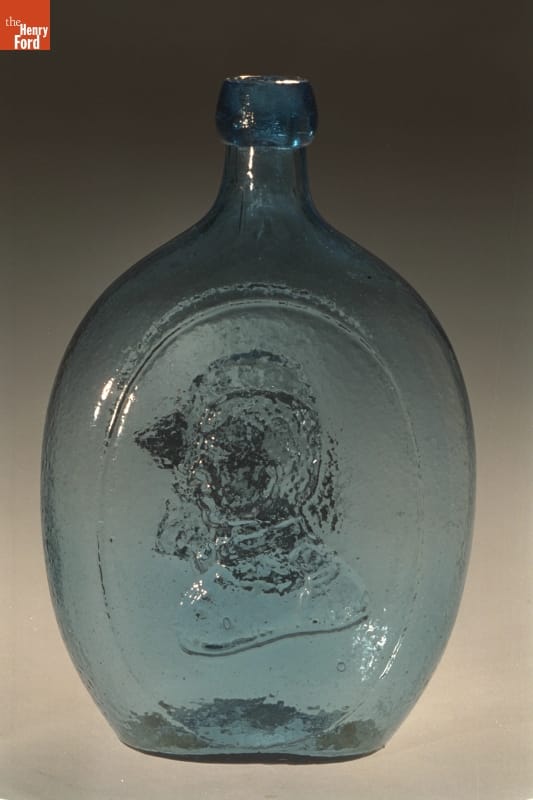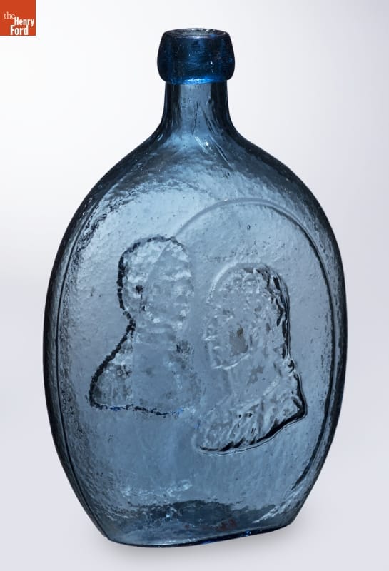 Whether depicted as commander-in-chief, the first president of the United States, or a symbol of the republic, George Washington is a common likeness on early American flasks. Washington appears on 72 recorded flask designs--more than any other person. This example depicts Washington as a classical statesman with major general Zachary Taylor, who became the 12th United States president in 1849.