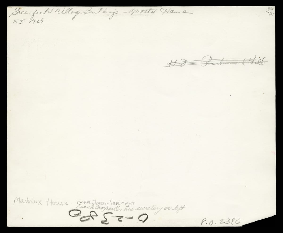 Henry Ford brought this house to Greenfield Village in 1943, one of a group of buildings to represent the progress of African Americans from bondage through emancipation to world recognition. Later research revealed that this home belonged to the Mattoxes, a land-owning African-American family--not a white plantation overseer, as Ford had believed. Henry Ford can be seen at right.