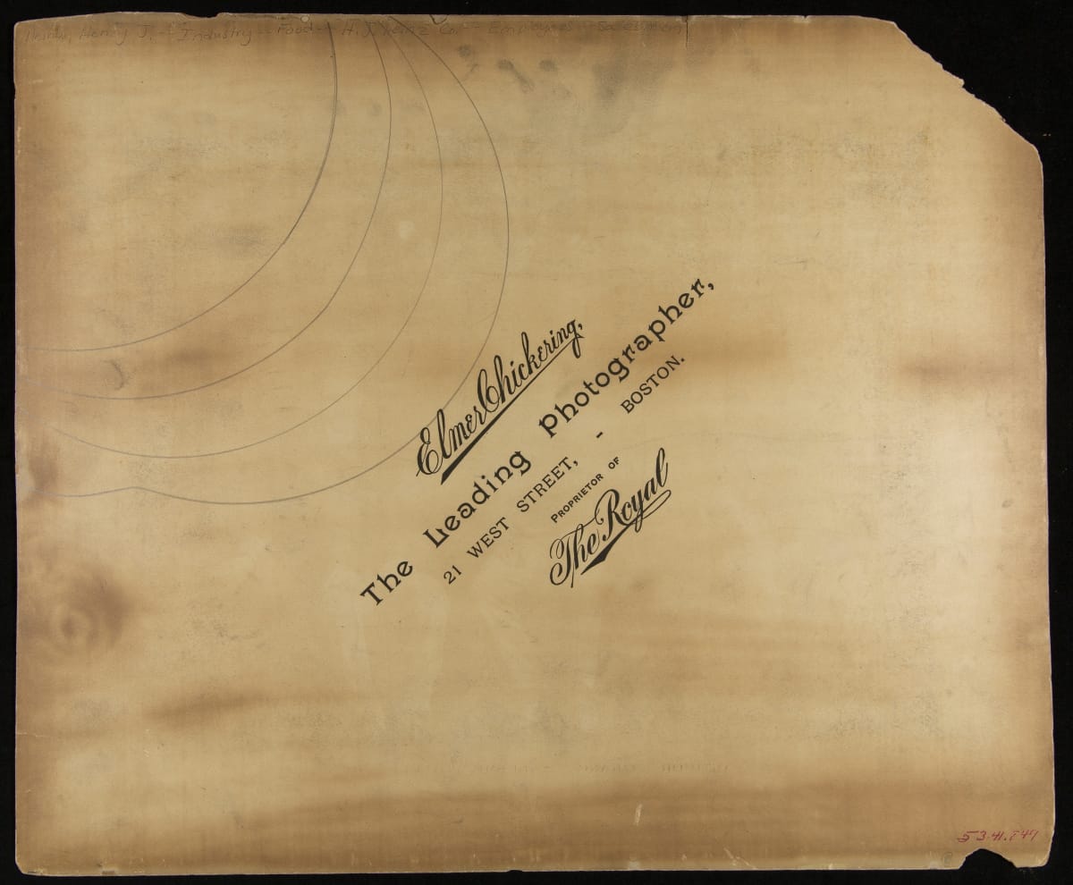 To promote his products to grocery stores and individual households, H.J. Heinz employed salespeople, referred to as "Travelers." Travelers were trained in product knowledge and attended conventions to learn new sales techniques. They also designed and built point-of-sale displays in grocery stores and set up demonstration tables for sampling the products. The men featured here are Travelers from Boston, Massachusetts.