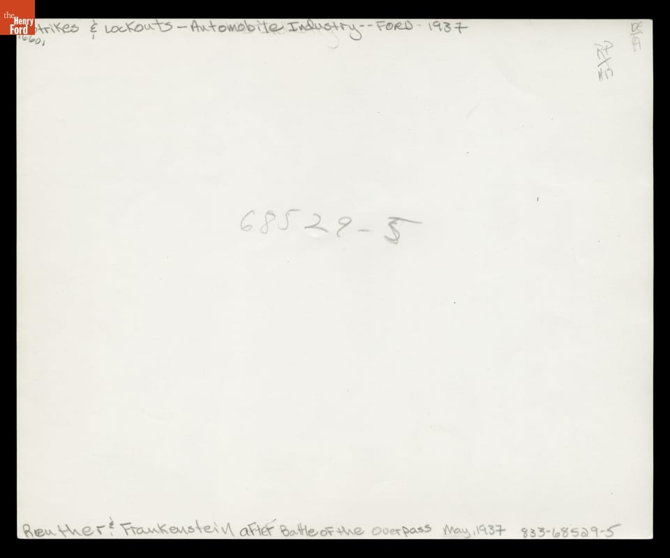Ford Motor Company refused to recognize the United Auto Workers labor union and hired guards to resist unionization among Ford employees. In May 1937, men from Ford's Service Department attacked labor organizers (including Reuther and Frankensteen) on a pedestrian overpass at Ford's Rouge Plant. This bloody "Battle of the Overpass" became a lasting symbol of the American labor struggle.