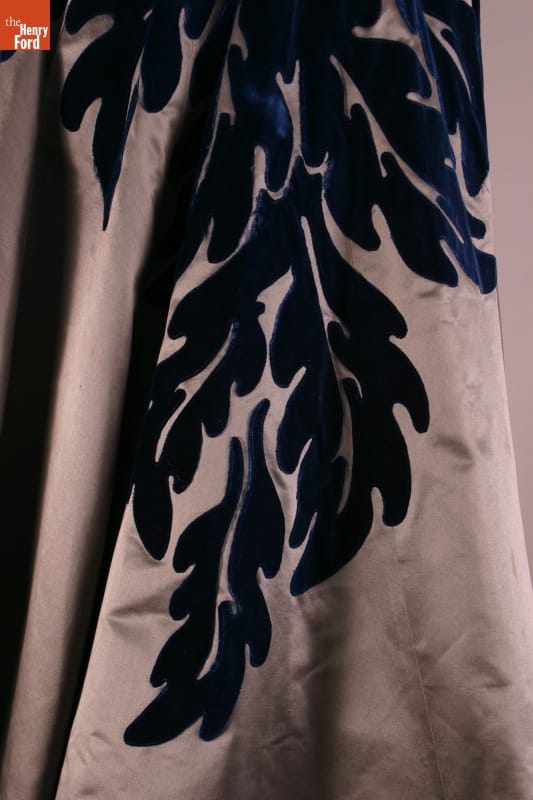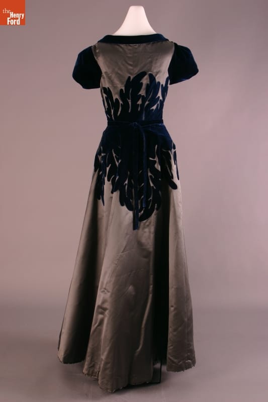 Elizabeth Parke Firestone, wife of tire magnate Harvey S. Firestone, Jr., cultivated a refined sense of fashion through years of interest in clothing design and collaboration with world-renowned couturiers. Firestone purchased a number of dresses from Saks Fifth Avenue's Salon Moderne, an exclusive boutique headed by designer Sophie Gimbel. Gimbel created stylish made-to-measure gowns for fashion-conscious American women of means.