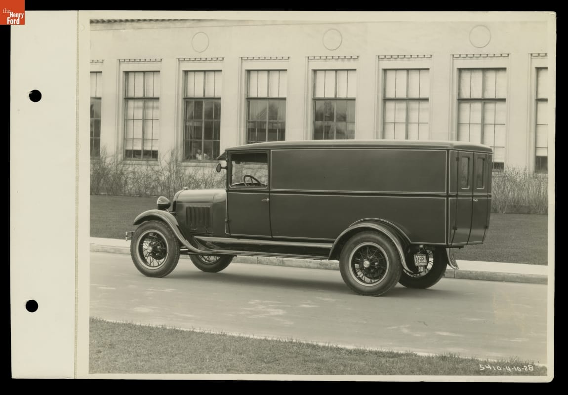 1928 Ford Model AA Panel Truck Outside Ford Engineering Laboratory, Dearborn, Michigan, April 1928