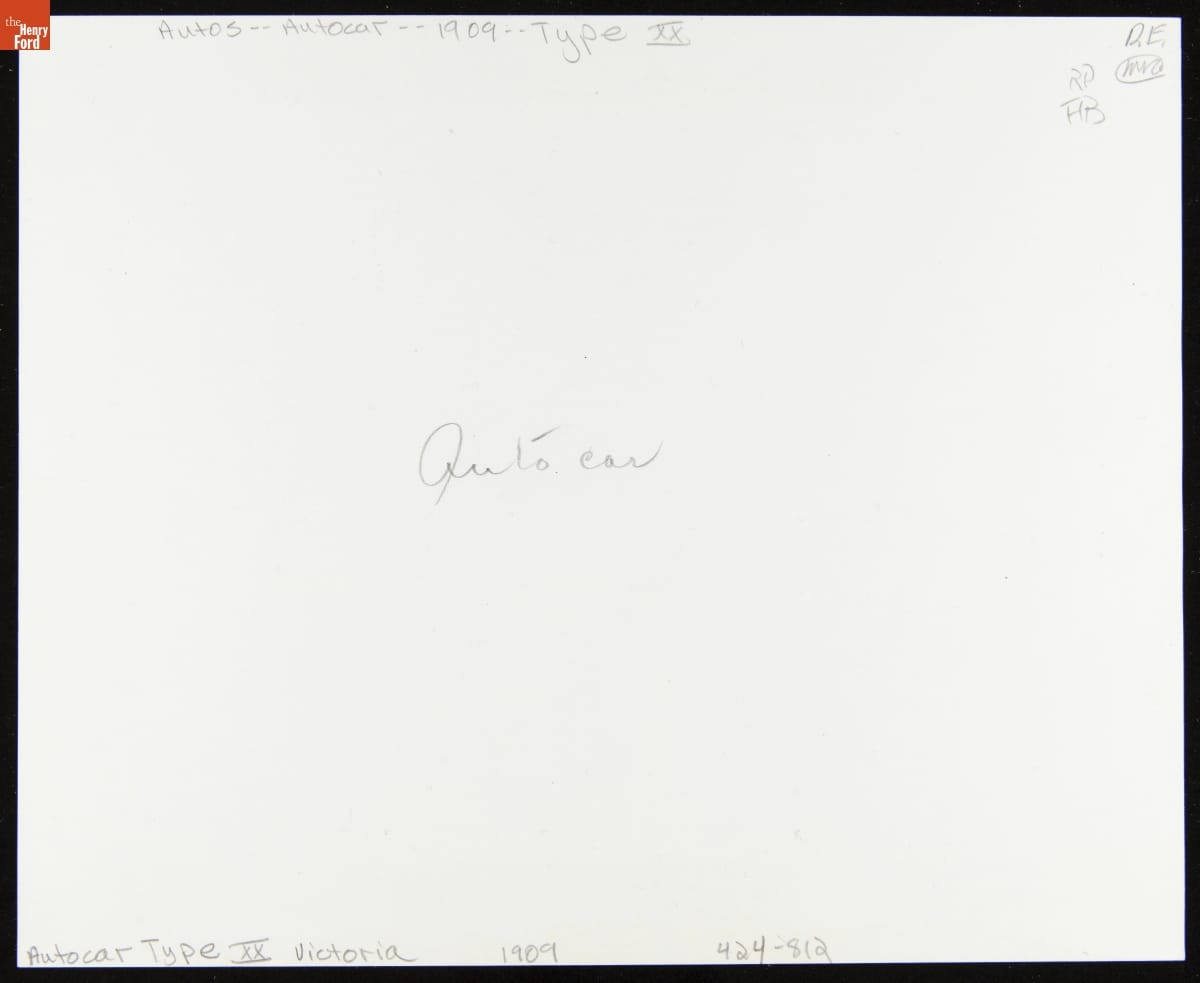 Founded in Pittsburgh in 1897, the Autocar Company built automobiles until 1911, when it changed over to building heavy-duty trucks. Autocar's Type XX automobile was suitable for commercial use in taxicab service. This example is seen outfitted as a taxi in 1909. Autocar was acquired by White Motor Corporation in 1953.