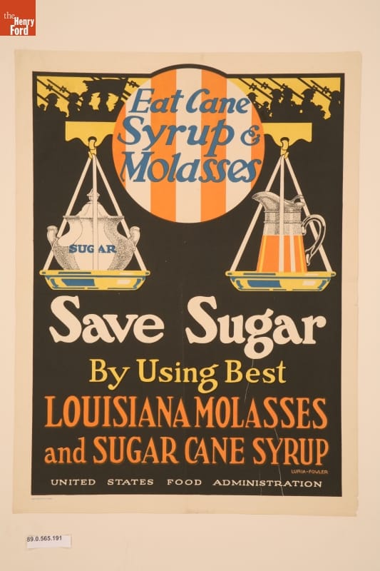World War I Poster, "Eat Cane Syrup & Molasses, Save Sugar," circa 1918