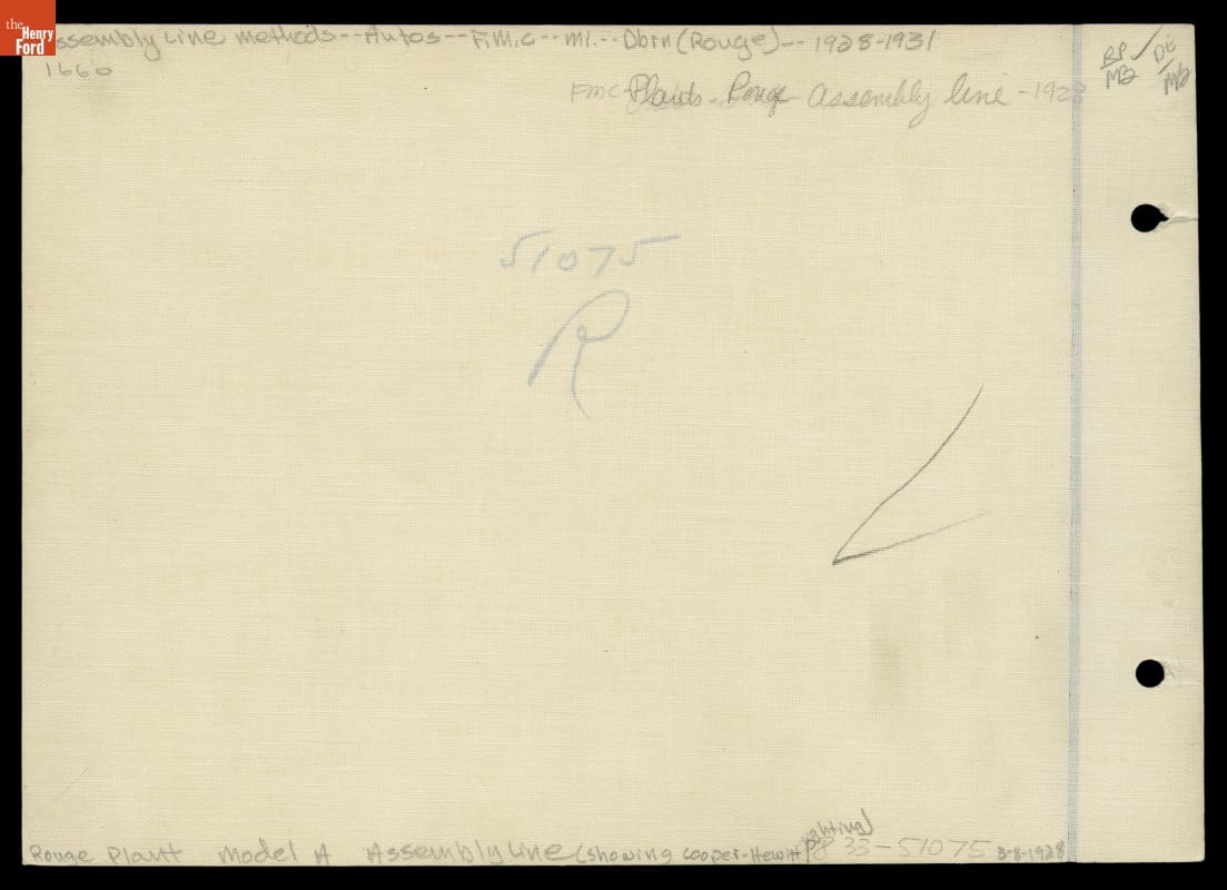 Front: 51075-3-8-28 Back: Rouge Plant Model A Assembly Line (showing Cooper-Hewitt lighting)
