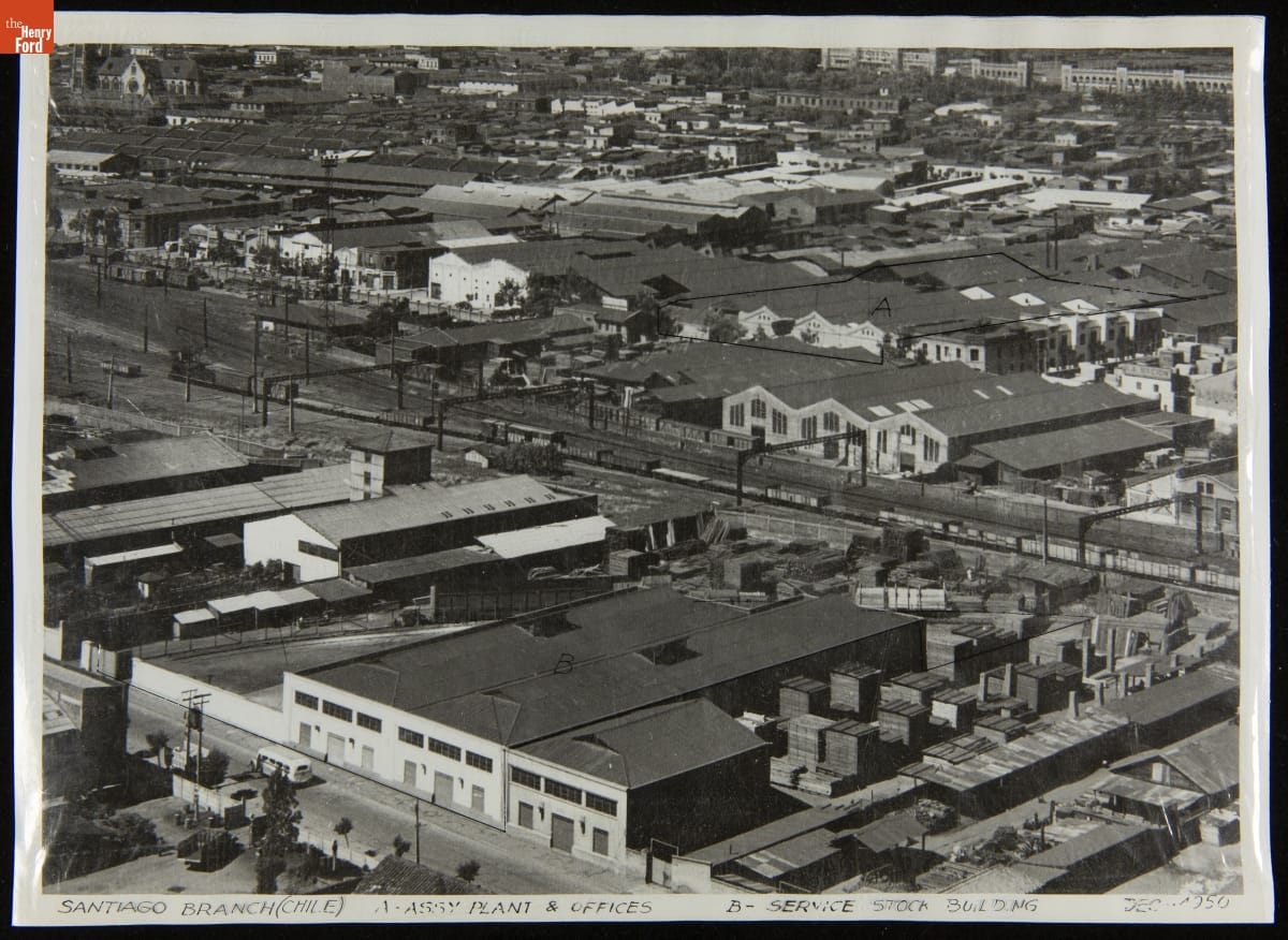Aerial View of Ford Motor Company Branch in Santiago, Chile, November 30, 1950