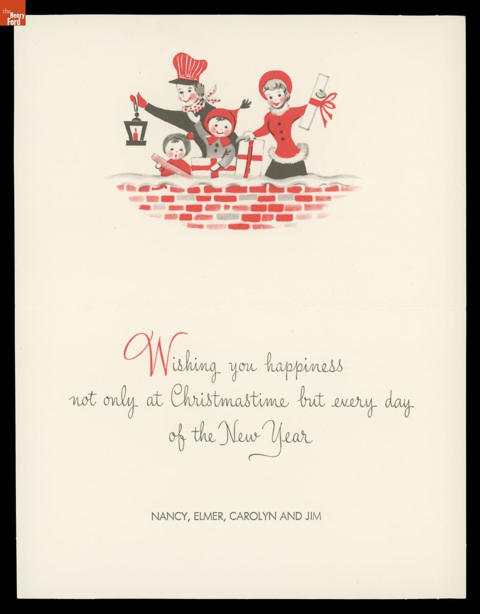 Railroads found a place in American traditions surrounding the holiday season. Trains became synonymous with trips to visit loved ones, and electric train sets became staples under the Christmas tree as decorations and gifts. More recently, movies like The Polar Express reinforced the connection. This holiday greeting card embraced the longstanding ties between yuletide and railroading.