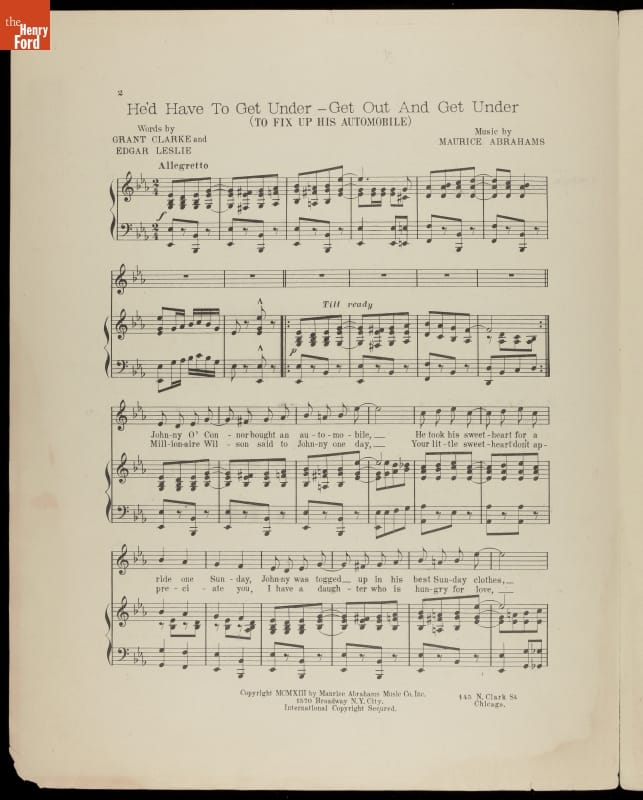 Music Sheet, "He'd Have to Get Under--Get Out and Get Under, to Fix up His Automobile," 1913